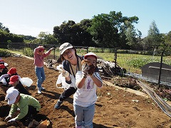 1年 芋掘り 2023年10月6日 20時06分 6月に苗植えをしたサツマイモの収穫体験をさせていただきました。ご家庭での道具の準備ありがとうございました。 最初は手が汚れることに抵抗を示していた子も、次第に大胆に土を掘るようになり、自然の中で活動する楽しさを存分に味わっていました。 自分の顔よりも大きな芋に子どもたちもびっくり!!深くに埋まっている芋は、力を合わせて掘り起こすことができました。※金曜日で荷物が多かったため、芋は学校で保管しています。10日(火)に持ち帰る予定です。 いいね 5