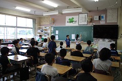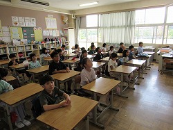 本日は暑いため、一旦教室に戻ってから、放送で安全主任と校長先生の話を聞きました。