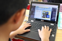 授業でクロームブックを有効活用するなら、タイピング力の向上は必須条件といえます。5年生では充実した授業につながるよう、子どもたちがコツコツとタイピングの練習をしています。練習は「寿司打」というサイトを利用しています。