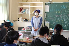 家庭科の学習で配膳台カバーを作成し、下級生にプレゼントしてくれました。