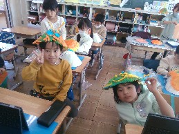 図工の授業で、お面やぼうしを作りました!個性あふれる作品ができました。みんなとっても似合っていますね(^ ^)!