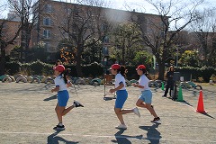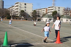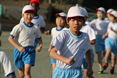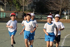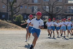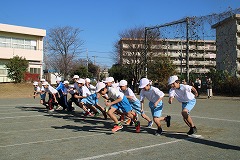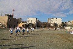 準備運動をしているグループと、その後で使う跳び箱の用意をしているグループに分かれて、活動していました。