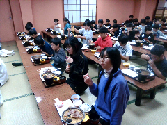 すでに20人以上が食べ始めて5分もしないうちにおかわり攻撃をしています。食欲があるのは素晴らしいですが、食べすぎてお腹が痛いよ〜なんてことにならないようにね。