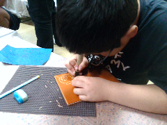 日光彫の時間になりました。校長室茶話会でも、修学旅行の中で一番楽しみにしているという人がいました。修学旅行のよい記念になりますね。頑張って世界に一つだけの思い出の作品を作ってください。