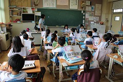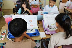 〇2年生 音楽「ドレミのトンネル」 鍵盤ハーモニカでオクターブを弾くときに、指をくぐらせることを学習しました。