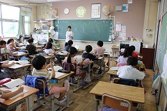 少し雲が多く日陰ができて、運動しやすい日です。運動会練習が比較的安全にできることにほっとしています。もちろん、早朝から、教頭先生が熱中症計を運動場に出し、一日の気温の変化をインターネットで調べて、学校中で情報を共有しています。先生方は運動場で活動させる前に必ず確認をしています。子どもたちは水筒持参で帽子をかぶらないと外に出ることができません。そして活動時間を10分、15分区切りにして、必ず日陰で休ませ、水分をとらせています。
