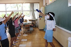 〇4年生 体育「表現運動」 「どっこいしょ!」と大きな声を出して頑張っていました。