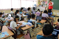 タブレットを使う練習をしました。先生の言うことをよく聞いて、きまりを守って使うことができました。
