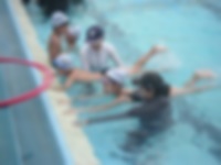 〇フォレスト 体育「水泳」フォレストの仲間で泳ぎました。まだ泳ぐことが怖い子や苦手な子に、先生方がマンツーマンで指導をしました。